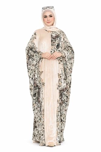 Generic - إسدال حريمي قطيفة شتوي – تصميم واسع مريح – نقشة فاخرة بأكمام واسعة – مناسب للصلاة والخروج لون بيج