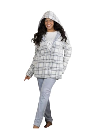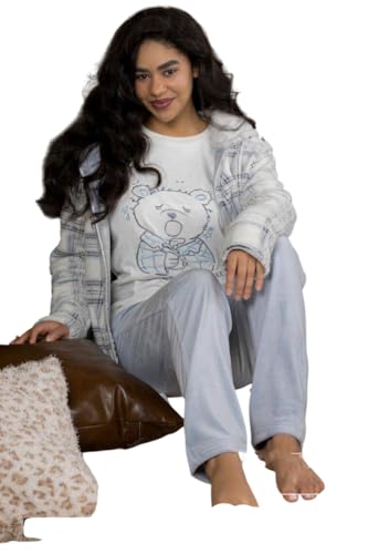 Generic - بيجامة شتوي قطيفة تيشيرت اكمام و جاكيت كابتشو بسوستة و بنطلون للنساء