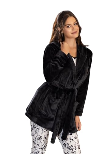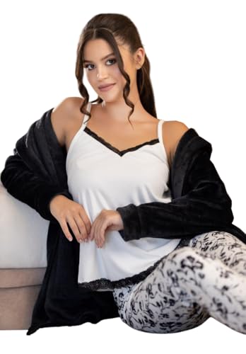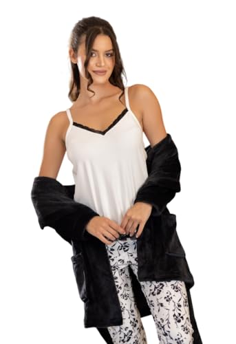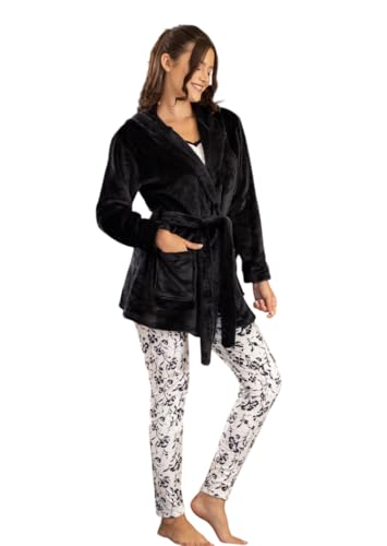 Generic - بيجامة شتوي قطيفة تيشيرت حمالات و بنطلون بنقشة زهور و جاكيت قصير بحزام و بجيوب للنساء