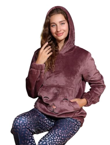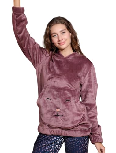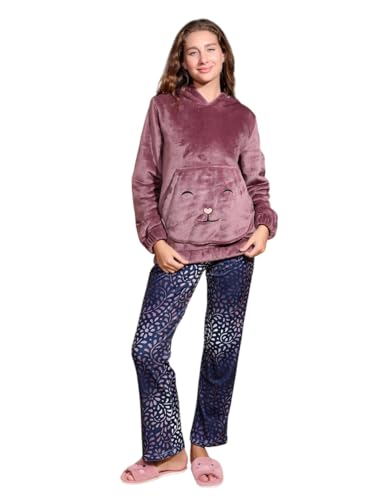 Generic - بيجامة شتوي قطيفة تيشيرت كابتشو بتصميم جيوب شعار و بنطلون منقوش للنساء