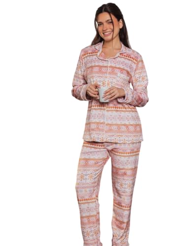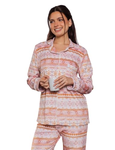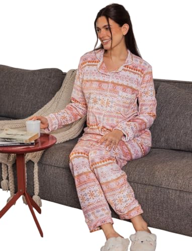 Generic - بيجامة شتوي قطيفة كلاسيكية بتصميم أزرار بتصميم منقوش رقيق للنساء
