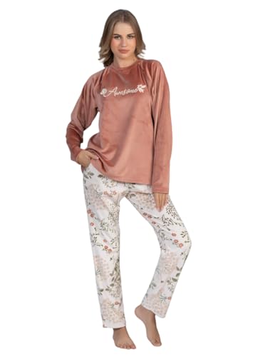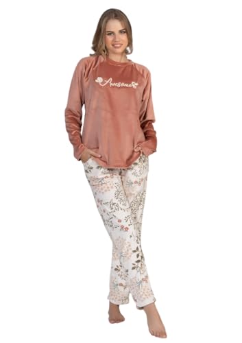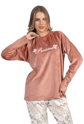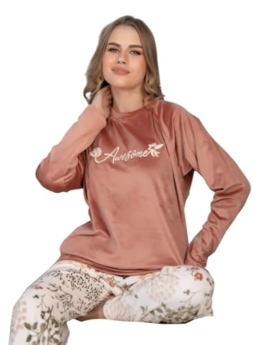 Generic - بيجامة شتوي قطيفة تيشيرت بتصميم شعار و بنطلون منقوش للنساء ( عادي و بيج سايز )