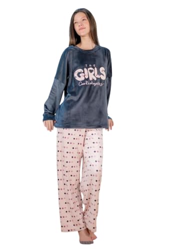 Generic - بيجامة شتوي قطيفة تيشيرت بتصميم عادي و بنطلون منقوش بتصميم واسع للنساء