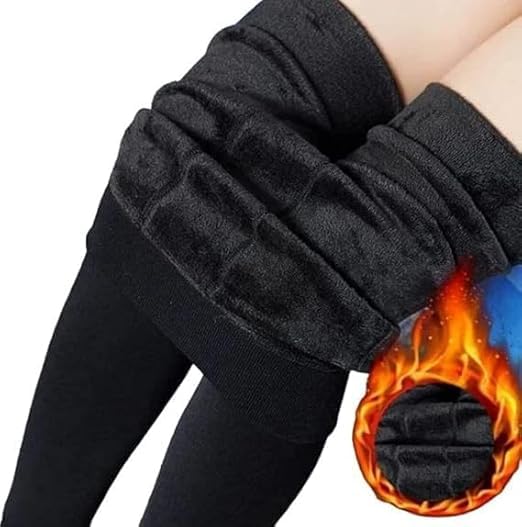 Generic - بنطلون لجينجز ضيق مبطن بالصوف الناعم للتدفئة في الشتاء للنساء - بنطلون حراري قطيفة سميك وناعم وان سايز