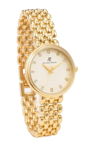 Generic - ساعة يد نسائية كلاسيكية، ذهبية مطلية، إطار كريستال، ميناء ذهبي، قطر 3.5 سم، سوار معدني قابل للتعديل، تصميم فاخر للمناسبات الرسمية واليومية
