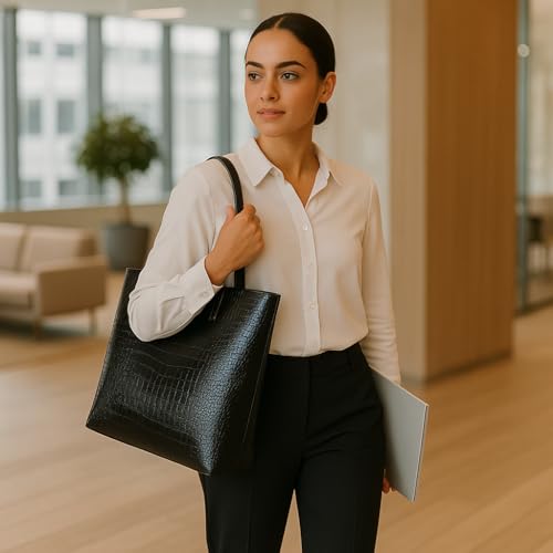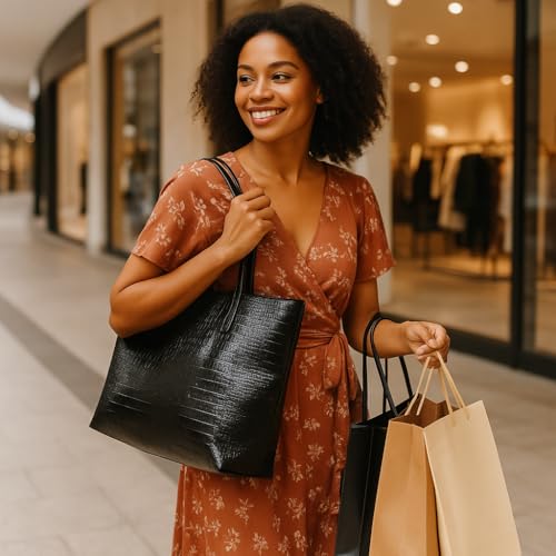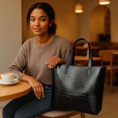 Generic - شنطة يد كبيرة توت للنساء مقاس XL - شنطة يد انيقة لامعة بنمط جلد التمساح، شنطة كتف واسعة للتسوق بسعة كبيرة للاستخدام اليومي