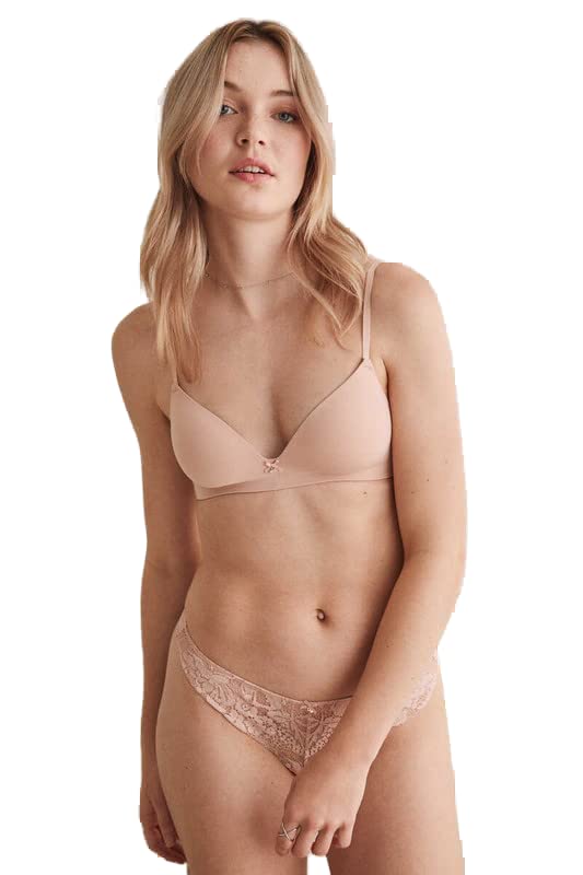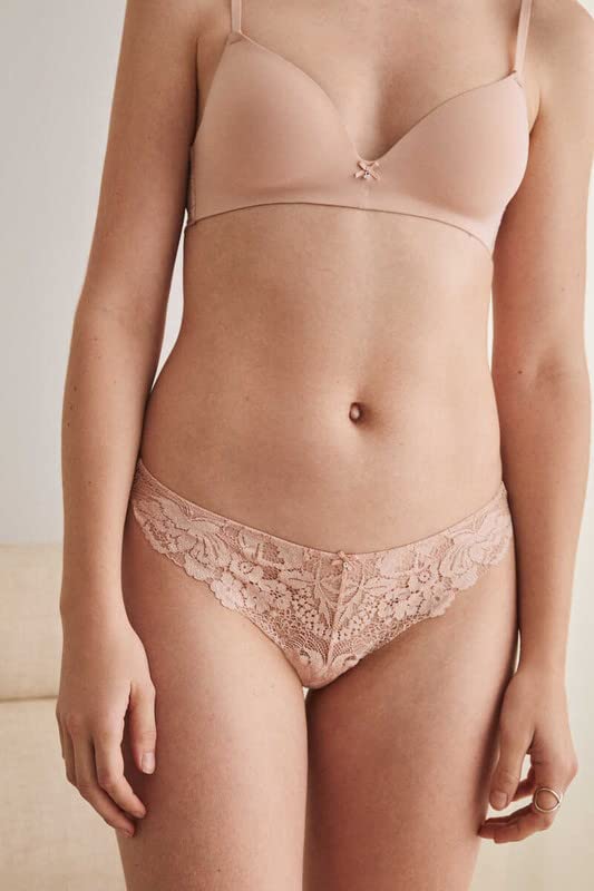women'secret - سراويل داخلية برازيلية دانتيل من المايكروفايبر للنساء مقاس Xs لون بيج نود