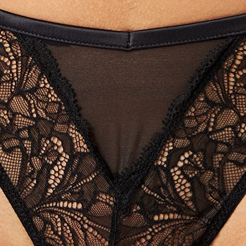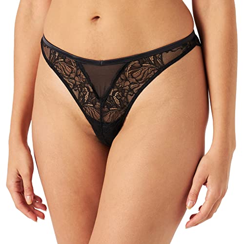women'secret - سراويل داخلية برازيلية للنساء من التول والدانتيل مقاس XL لون أسود، قطن
