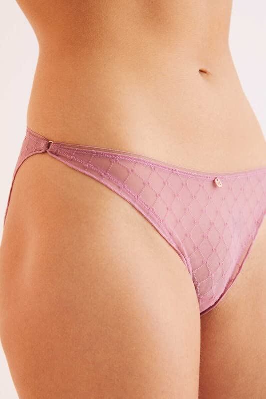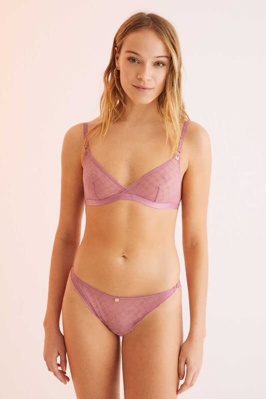 women'secret - وومن سيكريت سروال داخلي كلاسيكي من التول مزين بلوجو للنساء، مقاس S، لون ارجواني فاتح