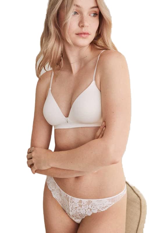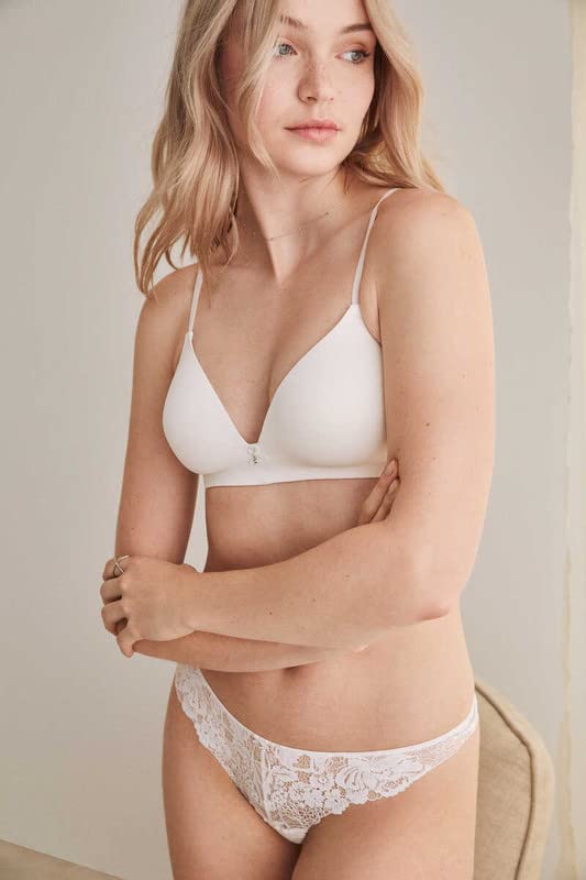 women'secret - وومن سيكريت ثونغ دانتيل من المايكروفايبر للنساء، مقاس Xs، لون ابيض