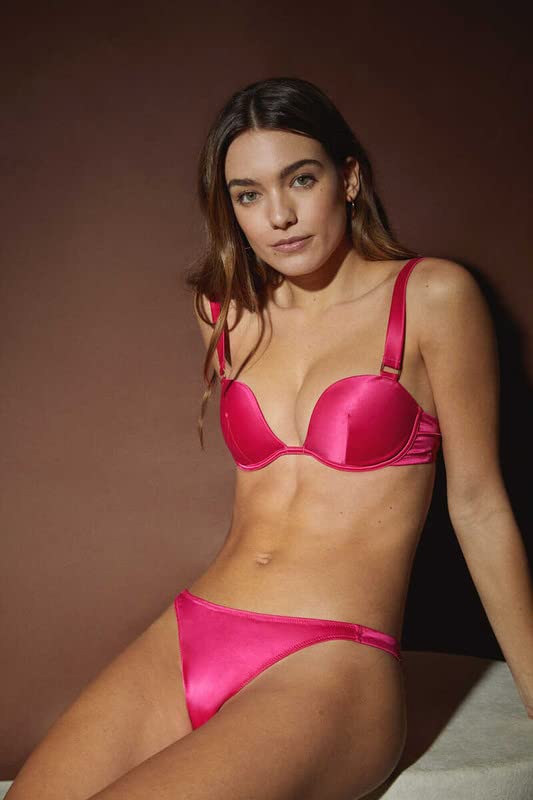 women'secret - وومن سيكريت سروال داخلي ثونغ ساتان للنساء، مقاس XL، فوشيا، متعدد الألوان
