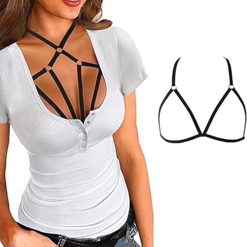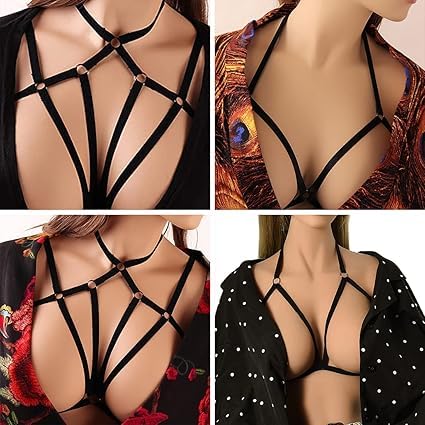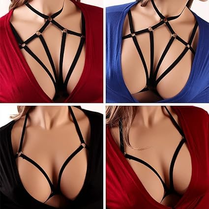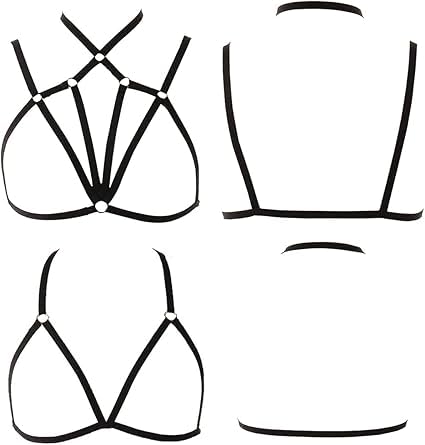 fashion mania - حمالة صدر نسائية مثيرة بحمالات قفص مفرغة بدون كوب ملابس داخلية مرنة للجسم كروس براليت بحزام قابل للتعديل