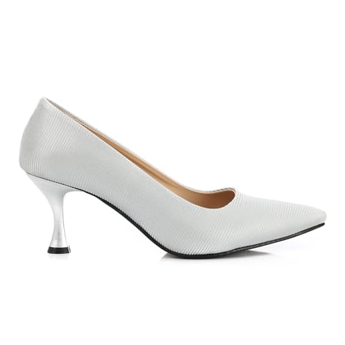 Xo Style - حذاء بكعب للنساء، 7 سم، فضي