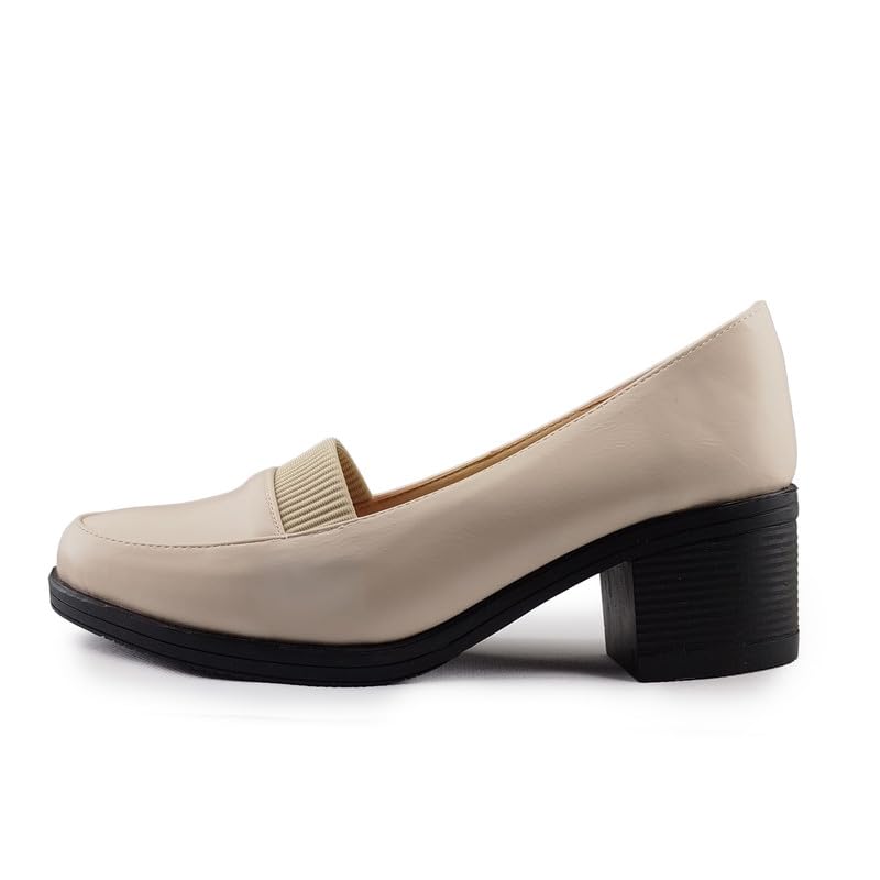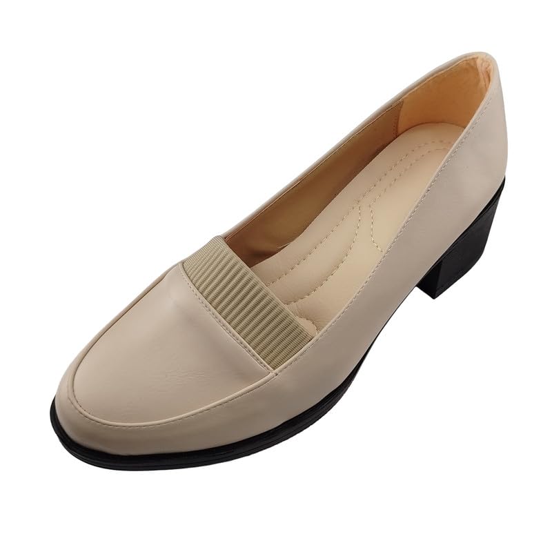 Generic - حذاء للنساء بكعب ومقدمة عريضة مع لوحة قماش مرنة لراحة القدم