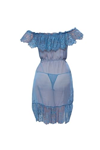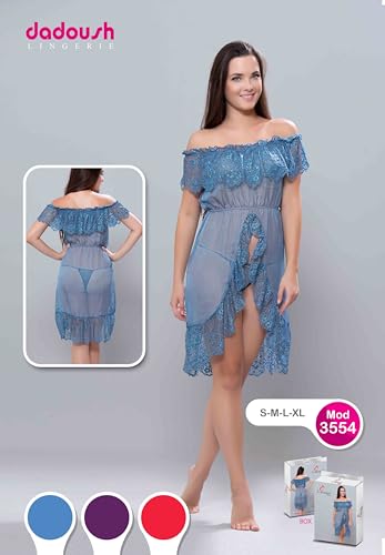 Dadoush - لانجيري تول مدعم بدانتيل قصير - قميص نوم انيق من قماش التول مع دانتيل للنساء من دعدوش