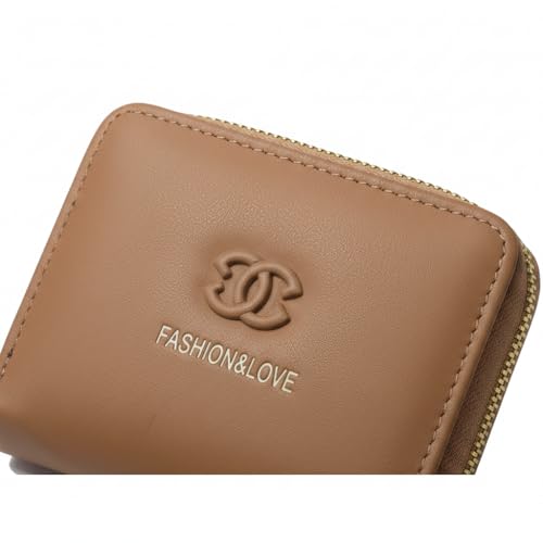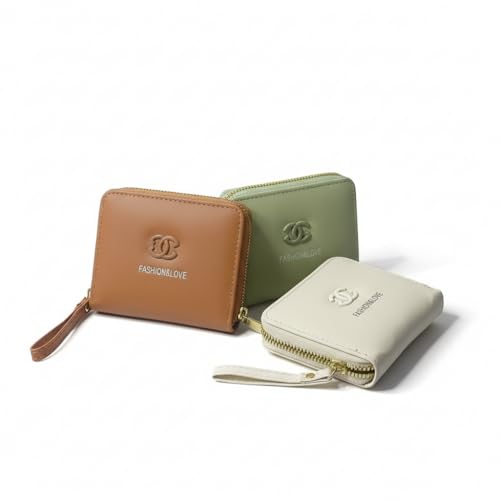 Generic - محفظة نسائية صغيرة مربعة بسوستة محيطة - حافظة بطاقات ونقود من الجلد الناعم بتصميم - بوك حريمي كاجوال مع معصم يد (اخضر)
