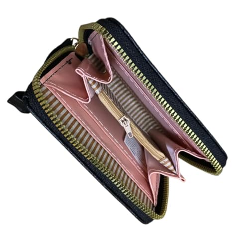 - سوستة محيطية عالية الجودة: إغلاق آمن بسحاب ذهبي اللون يحيط بالمحفظة بالكامل لحماية محتوياتك من السقوط أو الضياع