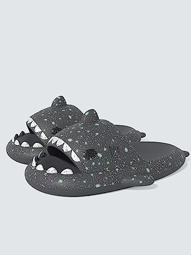 SHEIN - شبشب نسائي ناعم يتوهج في الظلام بتصميم سمكة قرش، شبشب بريبي صيفي من إسفنج ايفا