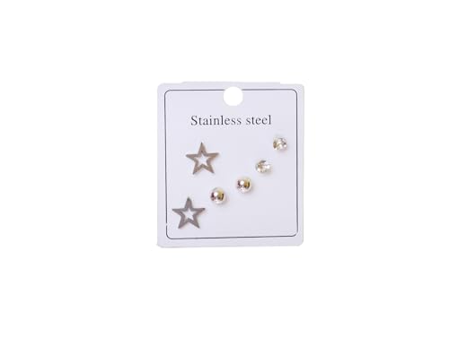 Generic - طقم اقراط ستانلس ستيل على شكل نجمة للنساء، 3 ازواج - فضي