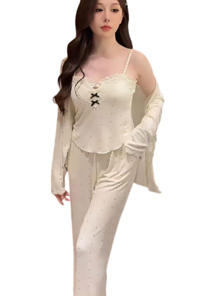 Generic - بيجامة صيفي كاجوال للنساء 3قطع مقاس موحد قطن ليكرا كود 7709