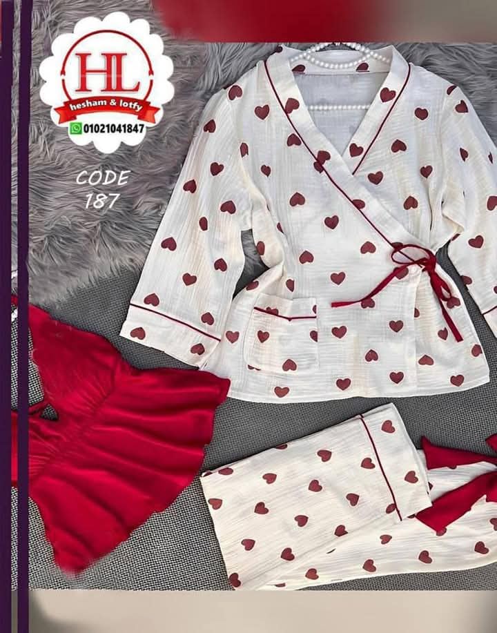 Generic - بيجامة صيفي كاجوال للنساء 3قطع مقاس موحد قطن ليكرا كود 9090