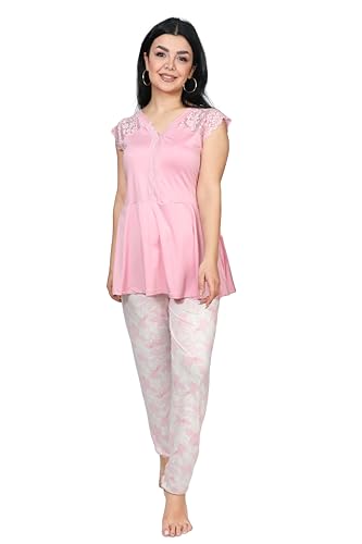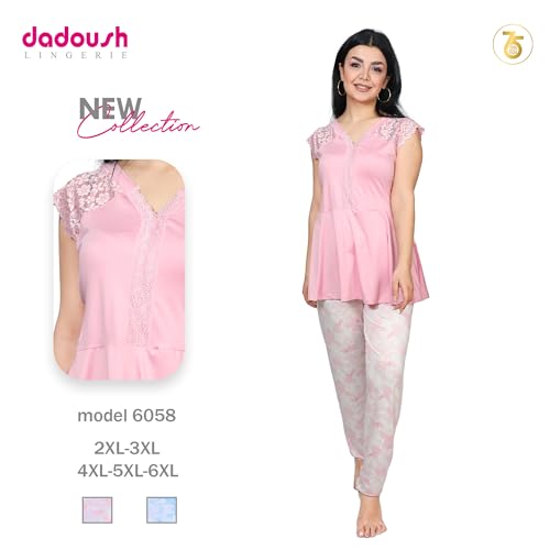 Dadoush - بيجامة نسائية صيفية مزودة بنقوش ورود ساحرة - طقم بيجامة حريمي بتطريز دانتيل على الاكتاف لاطلالة اكثر اناقة
