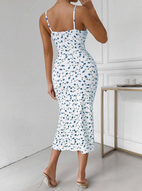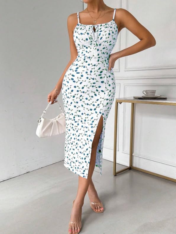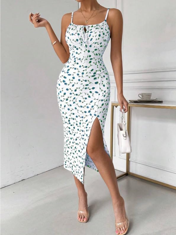 Generic - Women Summer Floral Split Front Spaghetti Straps Bodycon Dress