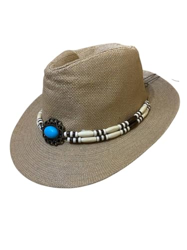 Generic - قبعة صيف نسائية مزينة بحلية وحزام جلدي مضفر، ,طاقيه كتان للنساء مع اسوره تصميم عصري