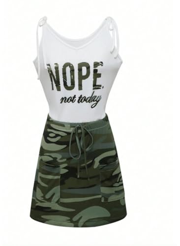 Generic - Women Summer Letter & Camo Print Casual Spaghetti Dress