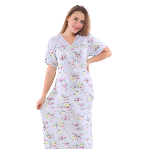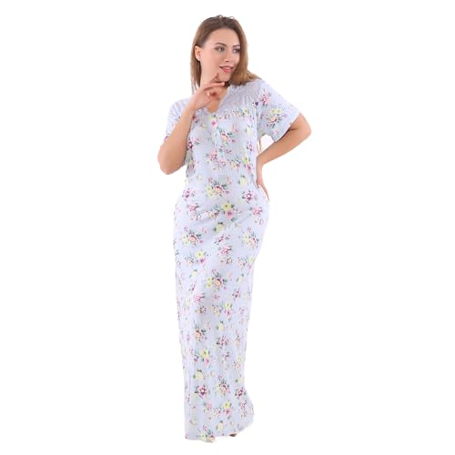 Shower - قميص نوم حريمي صيفي طويل - قميص نوم نسائي صيفي طويل بكم قصير (سماوي, 3XL)