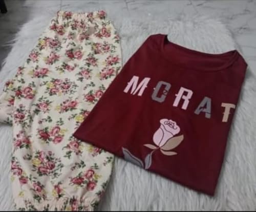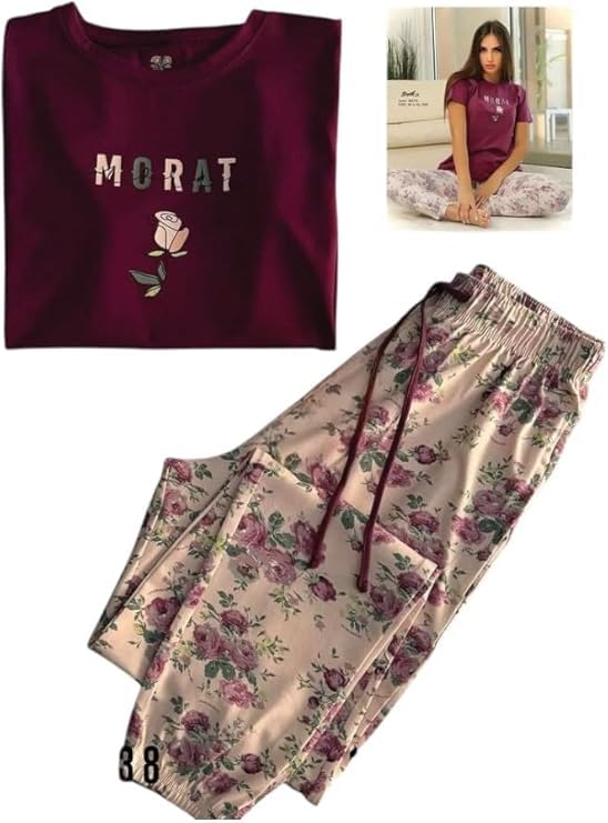 Generic - طقم بيجامة نسائي صيفي، قطعتين، بنطلون وتيشيرت، تصميم عصري مريح