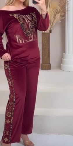 Generic - طقم بيجامة قطيفة للنساء مع ازرار، ملابس نوم من قطعتين بلون احمر غامق، طقم مريح وناعم باكمام طويلة، مقاس واحد يصل الى 85 كجم، بيجامة حريمي شتوى قطيفة