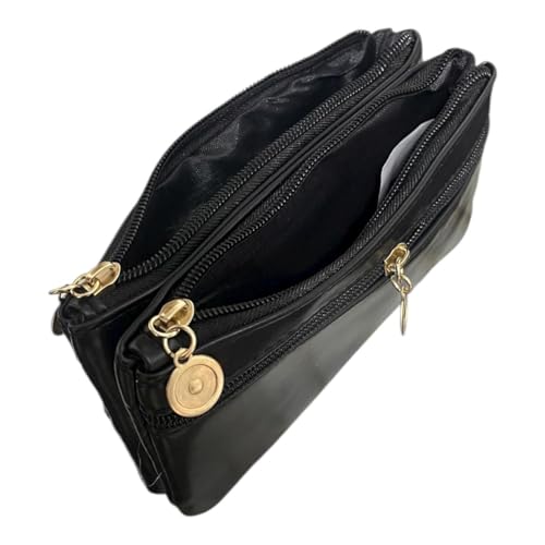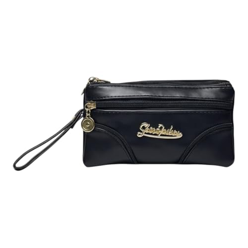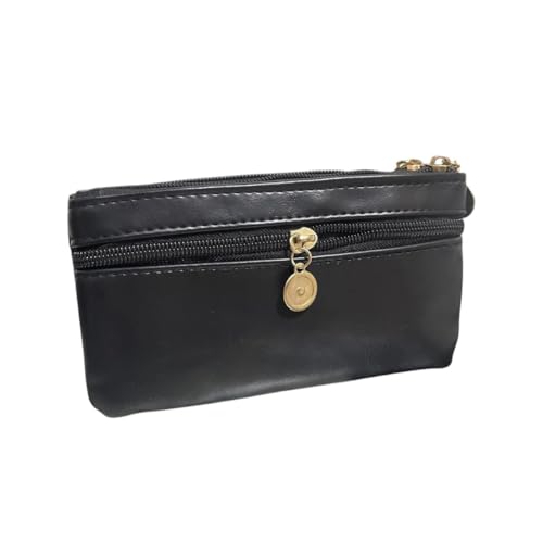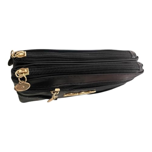 Generic - محفظة نسائية جلد مستورد فاخرة صغيرة باللون الأسود ، تصميم أنيق متعدد الجيوب بسحّابات ذهبية، عملية لحفظ النقود والبطاقات والموبايل ومثالية للاستخدام اليومي والهدايا