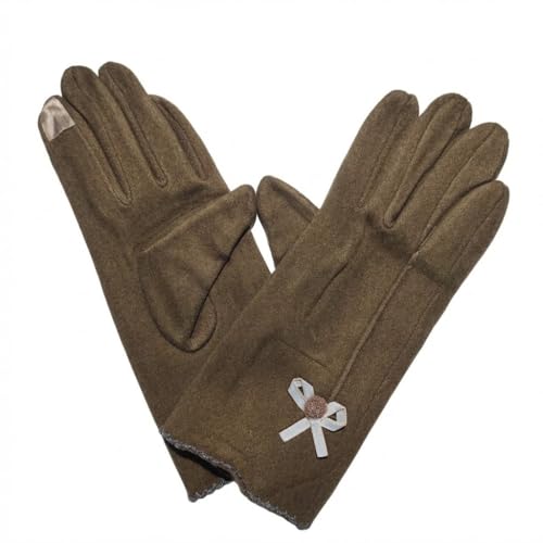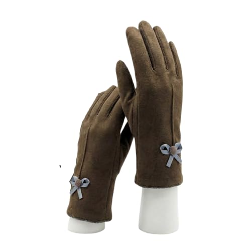 Generic - قفازات نسائية شتوية أنيقة بملمس قطيفة ناعم وتصميم فيونكة رقيق مع طرف إصبع يدعم شاشات اللمس للتدفئة والراحة