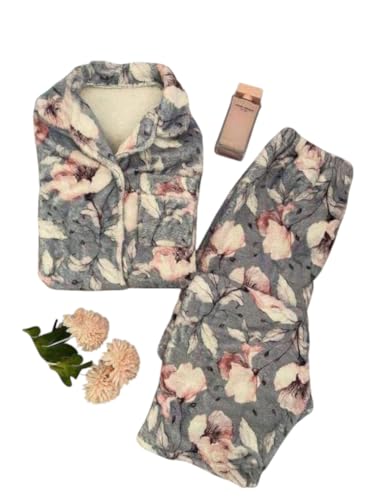 Generic - طقم بيجامة شتوي نسائي قطيفة ناعمة بنقشة زهور