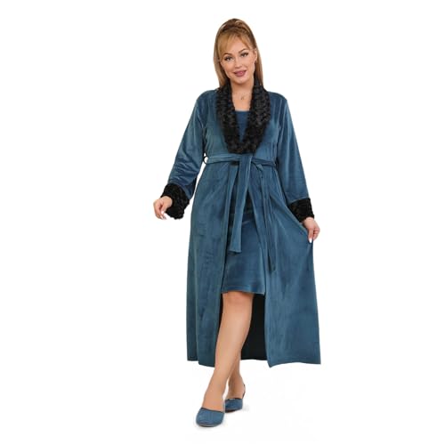 Senyora Khawatmi - طقم مخمل نسائي 2 قطعة للشتاء – روب مخمل طويل بياقة فرو وأكمام بحواف فرو + تفريعة مخمل بدون أكمام بتصميم مريح وأنيق (NO:2017)