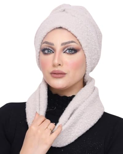 Generic - وشاح شتوي نسائي دافئ، لون أبيض فاتح، قماش صوفي ناعم، تصميم عصري مع غطاء رأس مريح