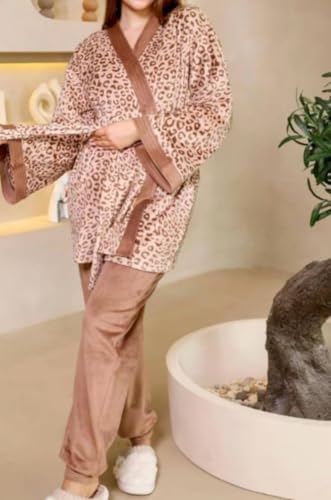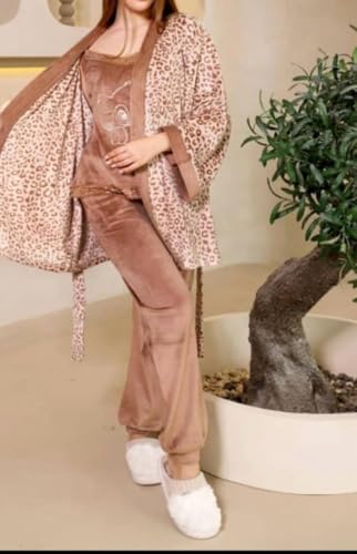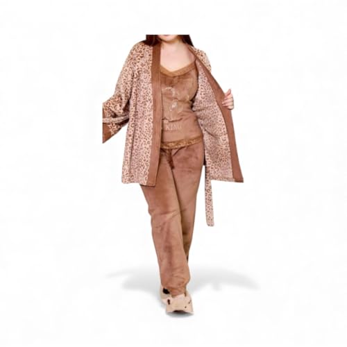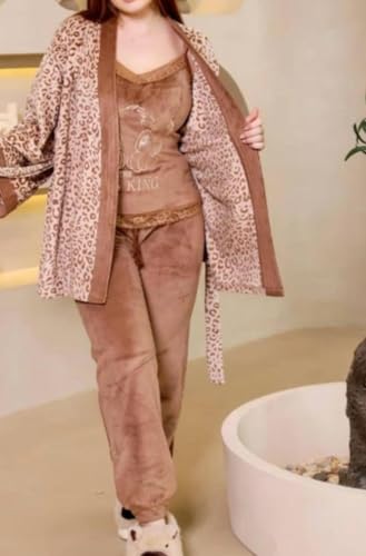 Generic - بيجامة شتوية للنساء مقاس XL - طقم بيجامة قطيفة للنساء، طقم نوم ناعم ومريح من ثلاث قطع