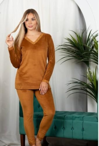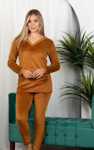 Generic - بيجامة شتوية للنساء بلون برونزي مقاس XXXL - طقم بيجامة قطيفة باكمام طويلة ناعمة ومريحة من قطعتين، طقم بيجامة نوم حريمي شتوى قطيفة شتاء 2026