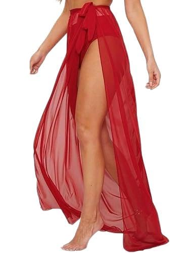 Generic - تنورة ملفوفة للنساء مع مشبك حزام لباس السباحة (،) (احمر)