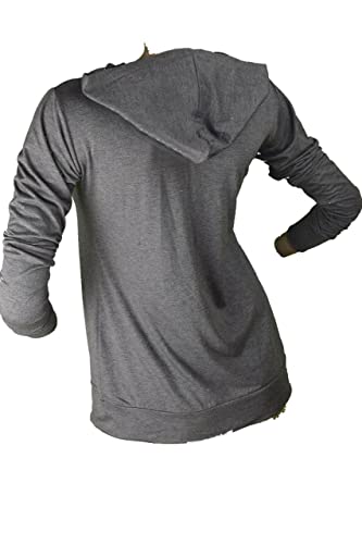 Generic - تيشيرت نسائى قطن بزنط رصاصى، النساء، ياقة عالية جدًا