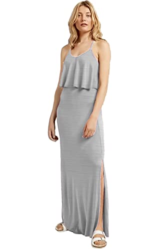 Generic - فستان رصاصى نسائى قطن بحمالات و مروحة من على الصدر و فتحة جانبية فى الفستان من اسفل