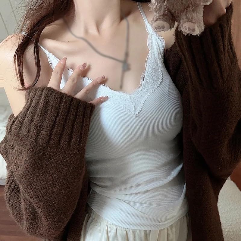 fashion mania - فانلة داخلية واسعة حريمي بحمالات رفيعة ورقبة على شكل حرف V، بلوزة لطيفة بدون أكمام بقصة فضفاضة