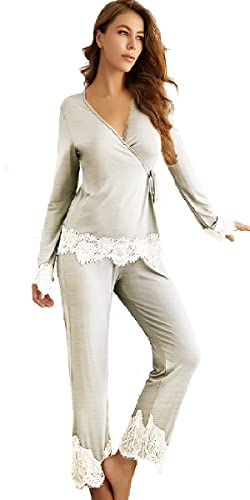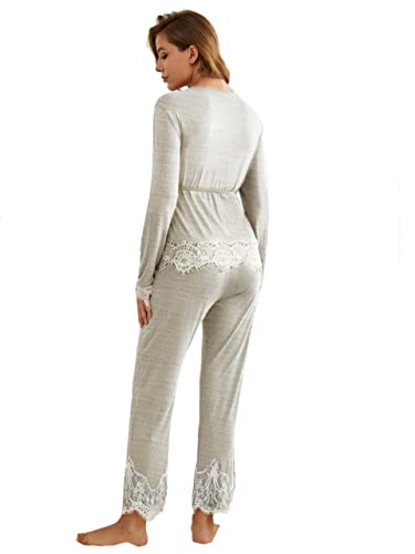 Generic - بيجامة قطنية بلون رمادي فاتح مع حواف بيضاء للنساء