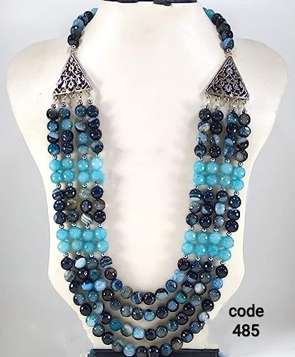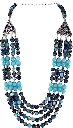 Generic - عقد نسائى متعدد الادوار من العقيق الطبيعى بقلادات من النحاس، أزرق