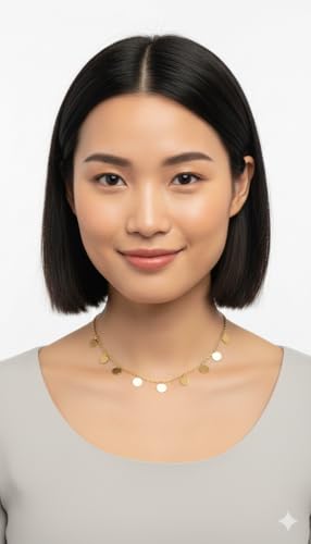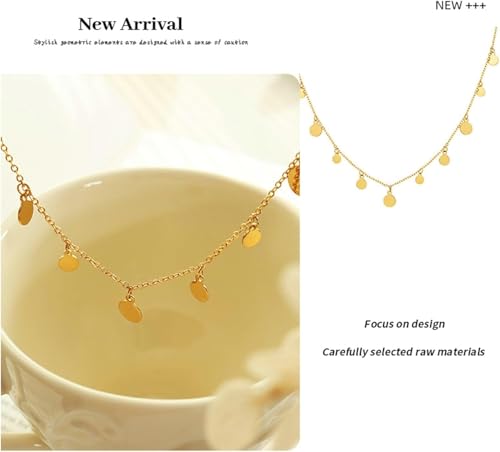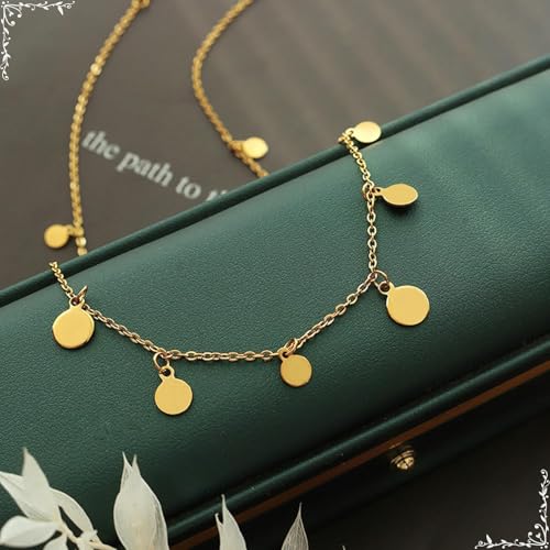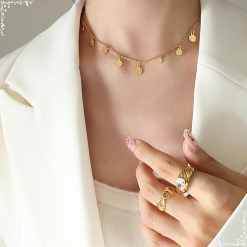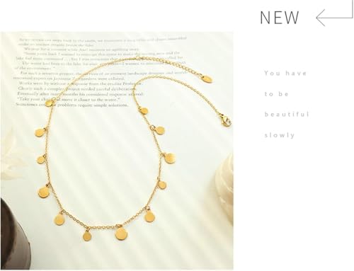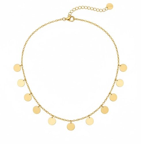 Generic - عقد بقلادة للنساء، عقد ستانلس ستيل ذهبي دائري مزين بالترتر، قلادة عصرية للعطلات