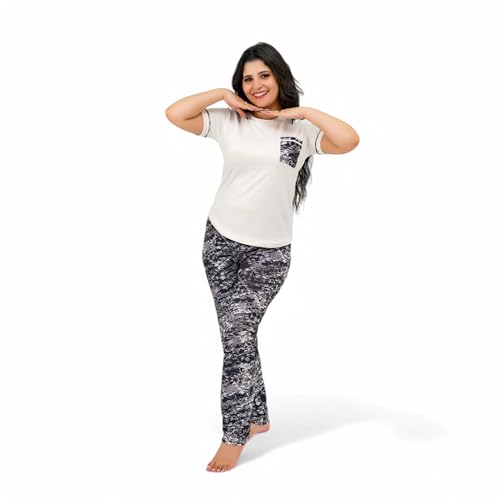 generic - طقم بيجامة للنساء - بيجامة صيفية للنساء - طقم من قطعتين بنطلون وتي شيرت - منقوش برسومات مختلفة ومصمم خصيصًا للراحة والبرودة أثناء النوم مقاس واحد .. جودة عالية