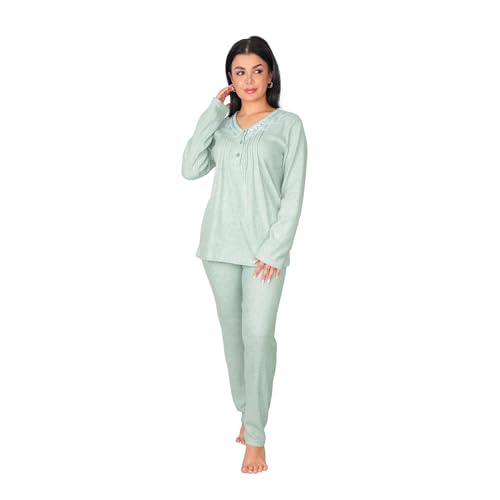 Dadoush - طقم بيجامة حريمي شتوي من قطعتين (GREEN, M)