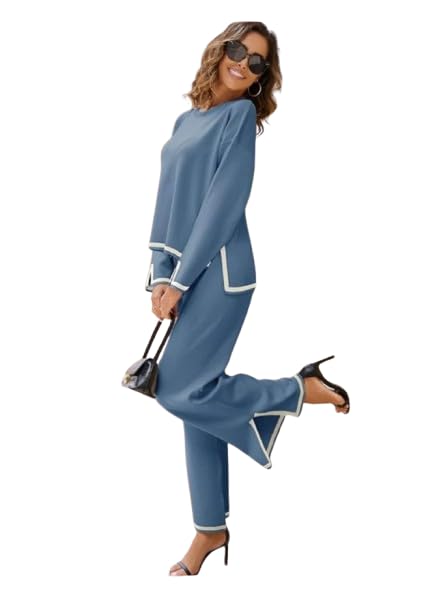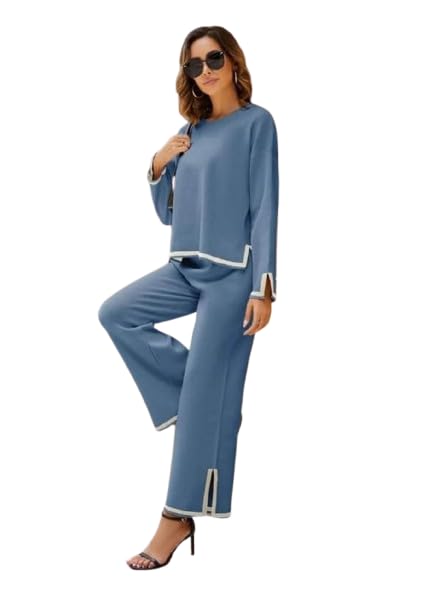 Generic - بيجامة شتوي كاجوال للنساء قطعتين صوف تريكو مقاس موحد لون ازرق كود 200