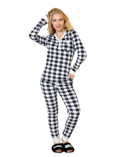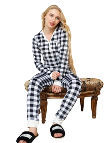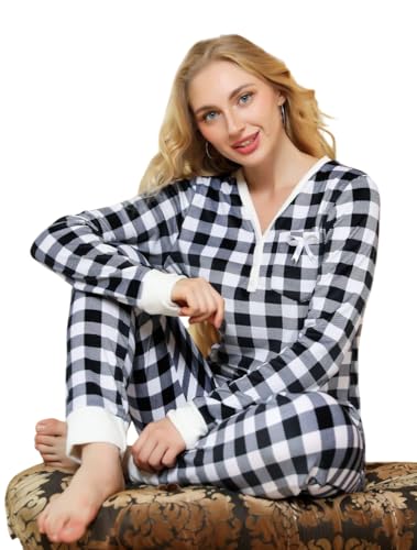 Generic - بيجامة شتوي قطيفة تيشيرت بنطلون بتصميم مربعات للنساء